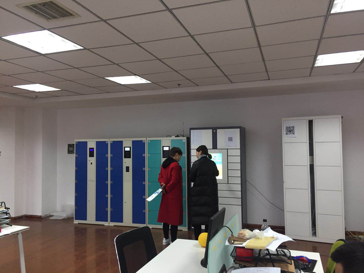 下午三时许,苏州易存公司迎来了两拨客户都来咨询我们的智能寄存柜。苏州智造社之前一直在和我们商榷智能柜的合作事宜,今天过来就是确定下寄存柜最后的细节。准备下单生产。
