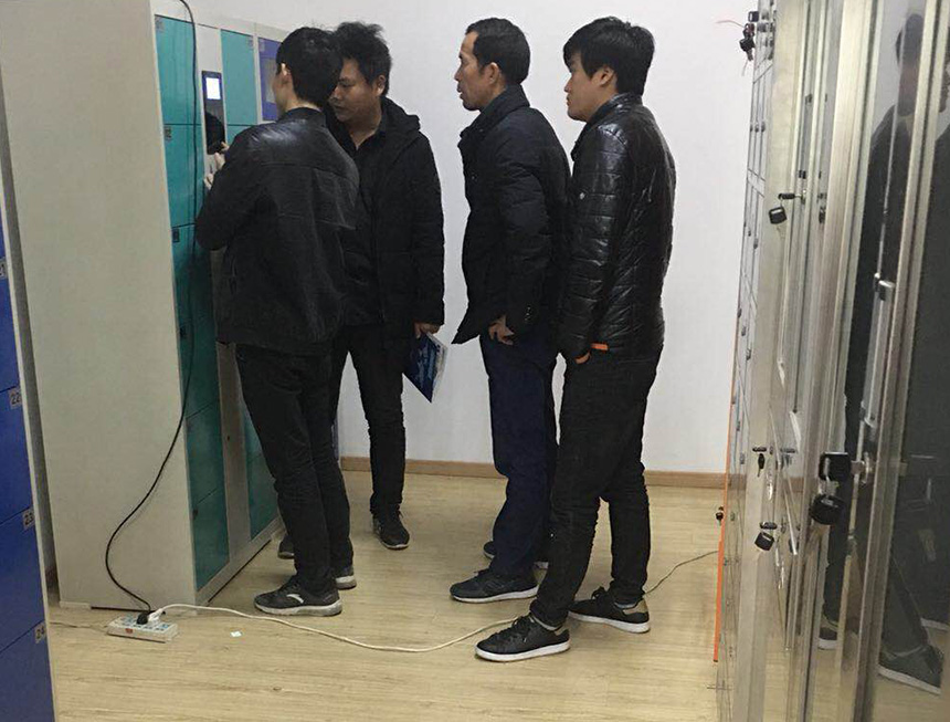 重磅消息:2017年12月4日,镇江袁经理在和我司白经理经过电话沟通,说今天要到我司拜访,在之前白经理已经了解可户有意采购工厂存包柜,只是还没确定。上午,他们一行三人来到了我司,我司白经理热心的接待。