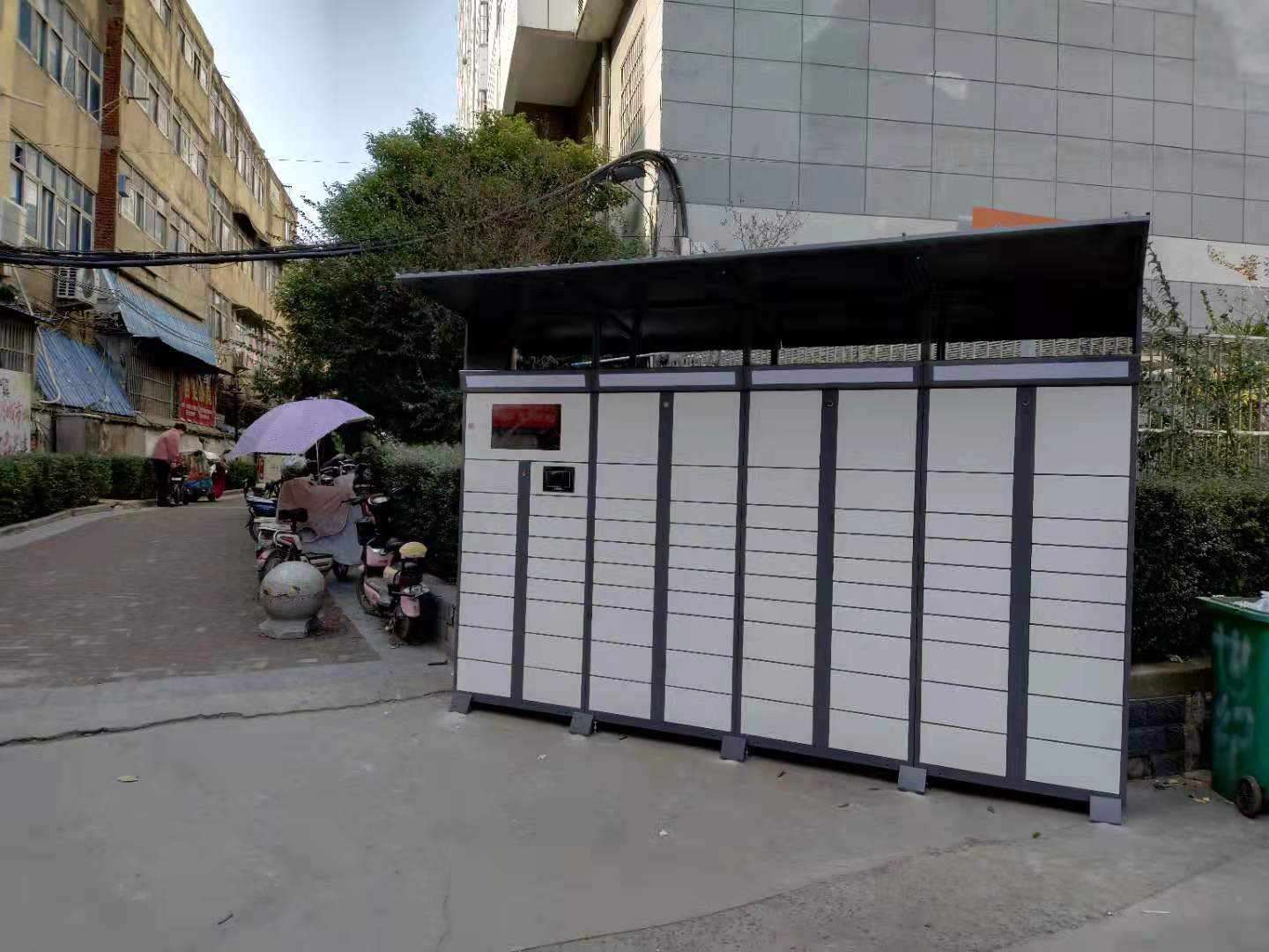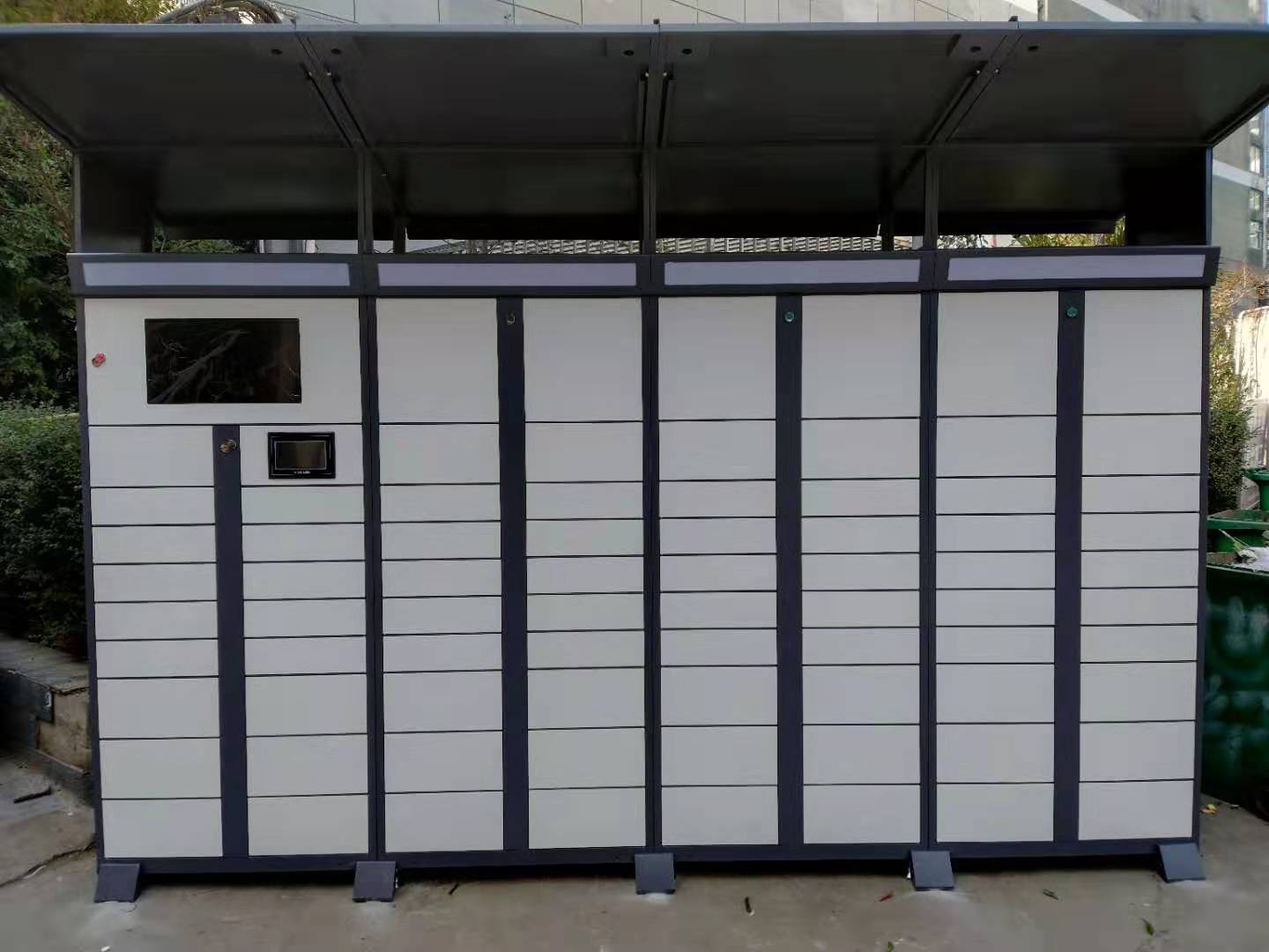 这种智能快递柜另外的优点就是可以和各大快递公司数据接口对接,显示物流跟踪信息,可以自动签收,免去快递员再报备签收的麻烦。,柜体的上部带有灯箱和雨棚,方便使用者再夜间或者雨天的时候也能很好的使用。
