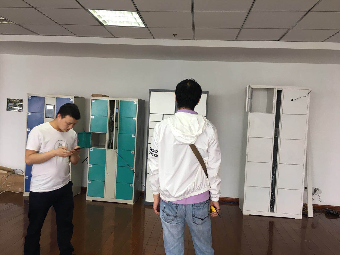 近日来到易存,下场查看了电子寄存柜样品,来确认易存电子寄存柜的钣金柜体工艺。