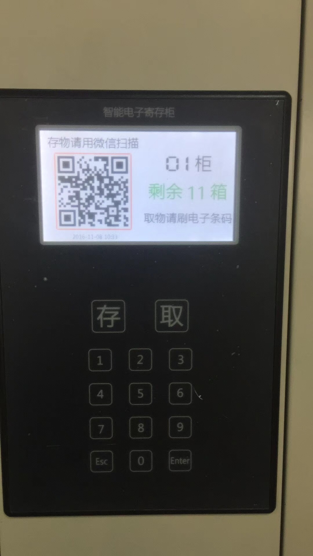 今天小编亲身体验了易存微信寄存柜。易存微信寄存柜的液晶屏幕上有一个二维码,和存取键。