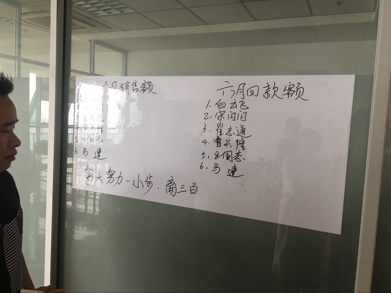 有目标才有动力,这个目标小黑板摆在了易存办公室的门口,让每个业务人员进出门都看得到,无时无刻的提醒业务要鼓足干劲,冲业绩!