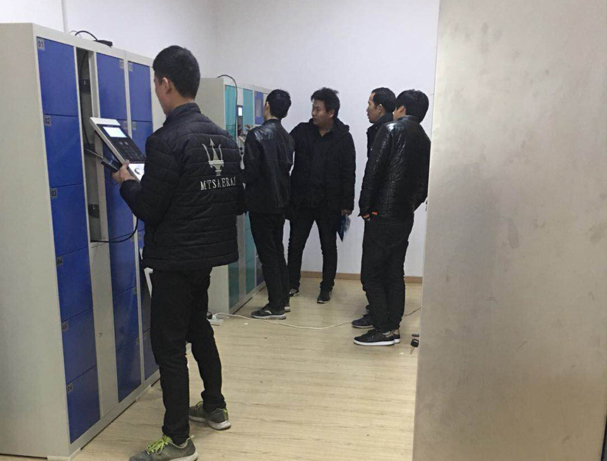 重磅消息:2017年12月4日,镇江袁经理在和我司白经理经过电话沟通,说今天要到我司拜访,在之前白经理已经了解可户有意采购工厂存包柜,只是还没确定。上午,他们一行三人来到了我司,我司白经理热心的接待。