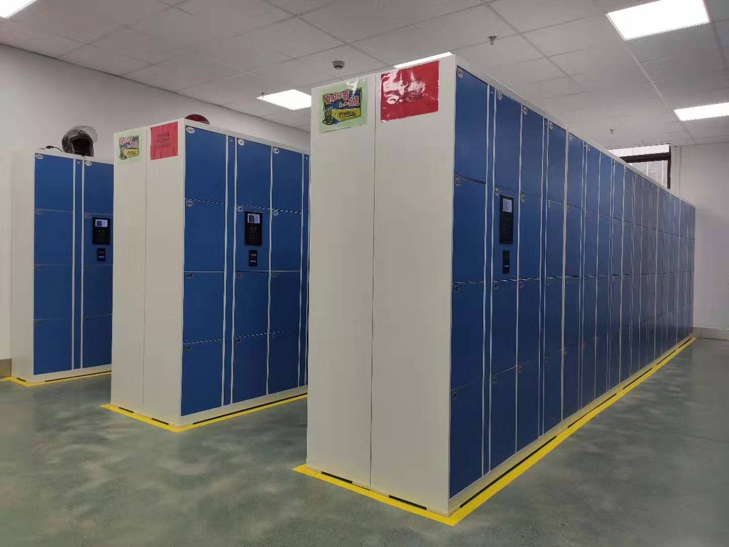 在工厂更衣室里,员工智能刷卡寄存柜整齐有序的摆放在一起,不仅为员工提供了寄存方便,而且对于工厂的管理效率也大大提高。这批智能刷卡寄存柜可以实现与公司的局域网联网功能,管理人员可以实时监控柜子的使用状况。并且可以根据员工的早中晚班设置员工的寄存权限。每个隔口都是和员工的考勤卡是绑定的,很大程度上保证了员工个人物品的安全性。