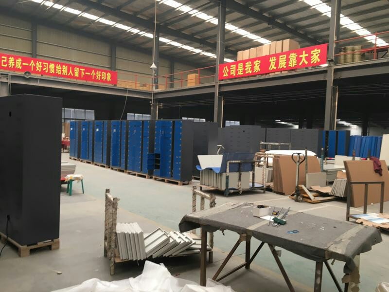 大批量的学校电子存包柜已经出炉,工人门都在安装、调试、包装,工人们也忙的不亦乐乎。工厂里一片忙碌景象!这款电子存包柜是专门学校定制,每个柜门上都有一个名片夹,方便学生识别。